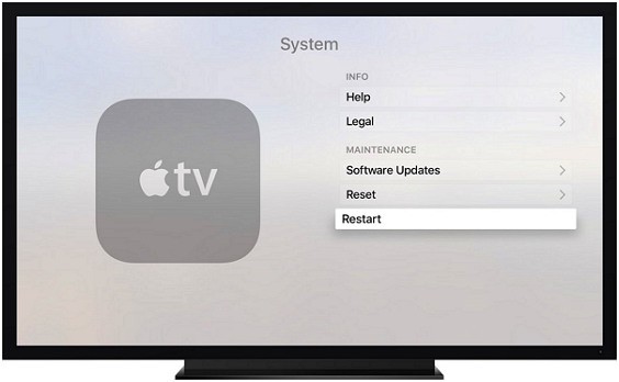 - 3. To restart your Apple TV, go to Settings > System > Restart and continue the procedure by following the on-screen prompts.